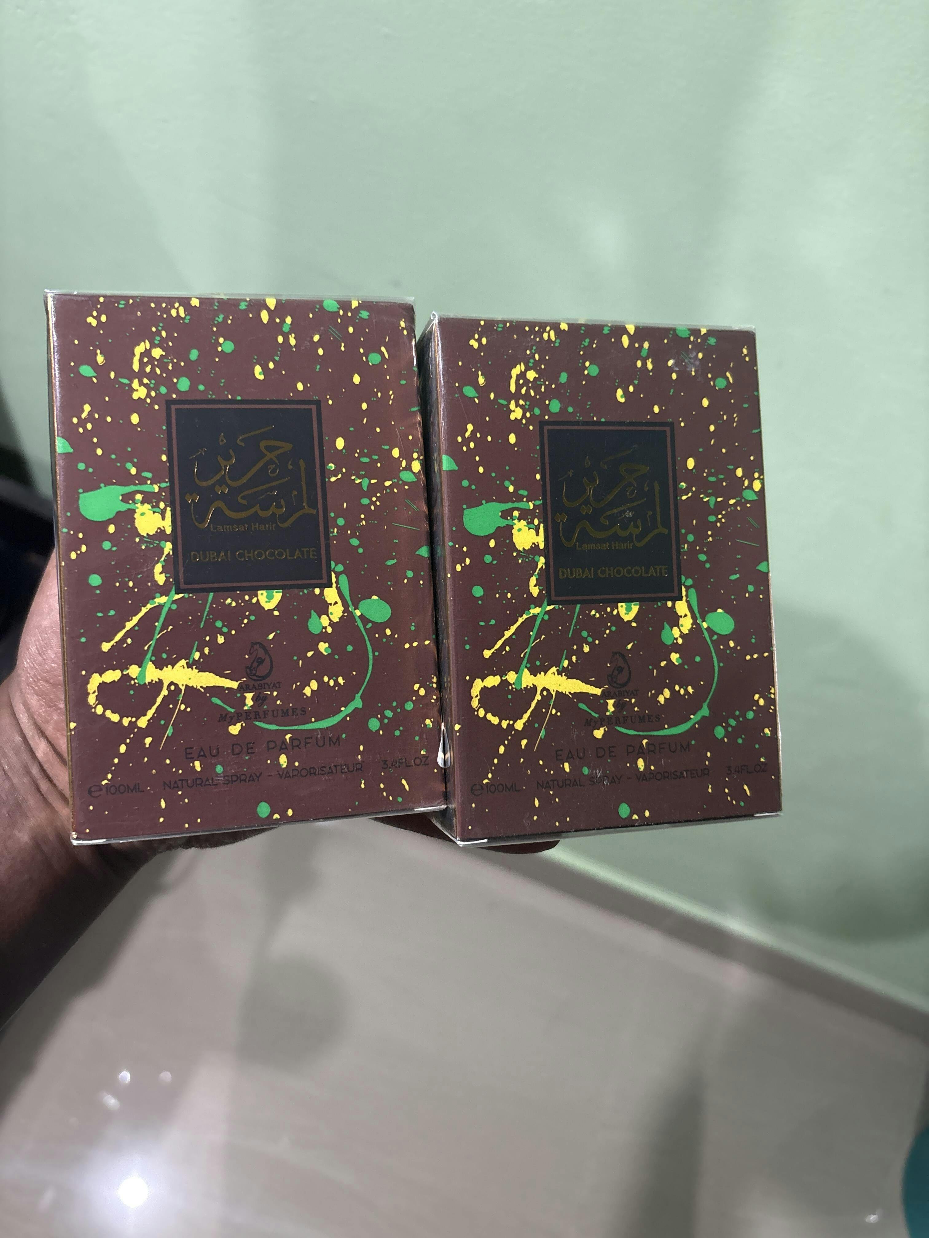 Experience the refined blend of Arabiyat Lamsat Harir Dubai Chocolate Eau De Parfum, crafted for both men and women. This 100ml fragrance combines rich, creamy chocolate notes with elegant oriental undertones, offering a luxurious scent that captivates and lingers. Perfect for those who appreciate a sophisticated aroma that balances sweetness and depth, it enhances your presence with timeless elegance.